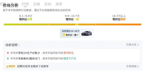当前市场行情显示,这款车型的二手车价格区间为9.74万至11.65万元。具体的价格因车辆的车龄、里程以及保养情况等不同因素而有所差异。在做出购买决策之前,建议您对比市场上的类似车型,以便更好地评估车辆的价值。