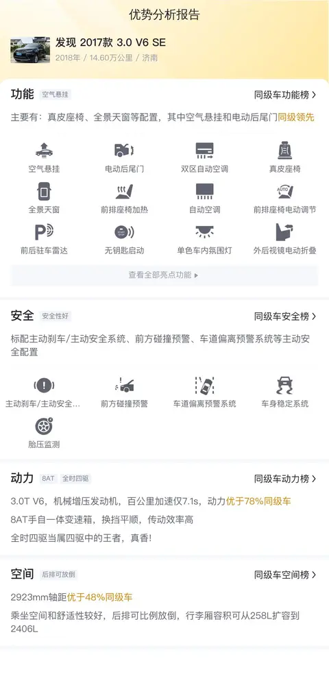 这辆车在配置、动力、空间等方面均有一定的优势。具体分析报告如下: