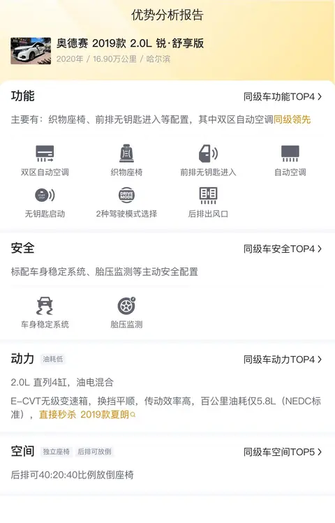 二手奥德赛锐·混动的受众人群主要是注重舒适性和实用性的家庭用户。他们通常需要一辆既能满足家庭出行需求,又能兼顾日常通勤的车型。奥德赛凭借其大空间、高配置和较低的油耗,成为了这一人群的理想选择。同时,追求性价比的消费者也会被奥德赛的优惠力度所吸引。综上所述,奥德赛 2019款 2.0L 锐·舒享版虽然在动力和隔音方面存在一些不足,但整体来看,其舒适性、经济性和配置都表现出色,尤其是对于家庭使用来说,宽敞的空间和丰富的配置是一大亮点。在购买二手车时,建议您实地查看车辆情况,确保车况良好,以免出现不必要的麻烦。