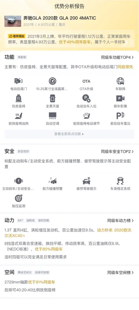 奔驰GLA(图片|配置|询价)从2014年问世以来,一直是豪华紧凑型SUV领域备受瞩目的明星。它的诞生不仅丰富了奔驰SUV家族,更定义了都市高端生活新标准。今天要说这辆奔驰GLA 2020款 GLA 200 4MATIC,车况良好,车龄4年多,行驶里程4.9万公里,售价13.58万,性价比不错。