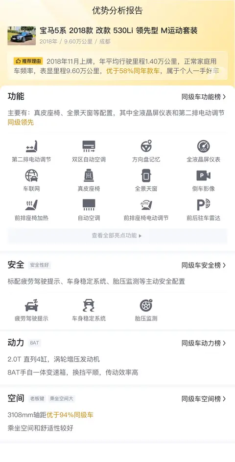 综上所述的新车含税价、用车成本、市场行情、优势分析、同款比价等数据仅供参考。在配置部分,因为二手车非标品,车辆可能会存在配置改装的情况,具体车况信息需要线下结合车辆实际情况进行综合参考。