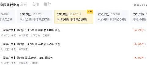 另外,我们还收集了这款车在全国范围内的一些在售价格信息,用作辅助参考,让您做到心中有数,这些在售的二手车价格因车辆的具体情况而有所不同。