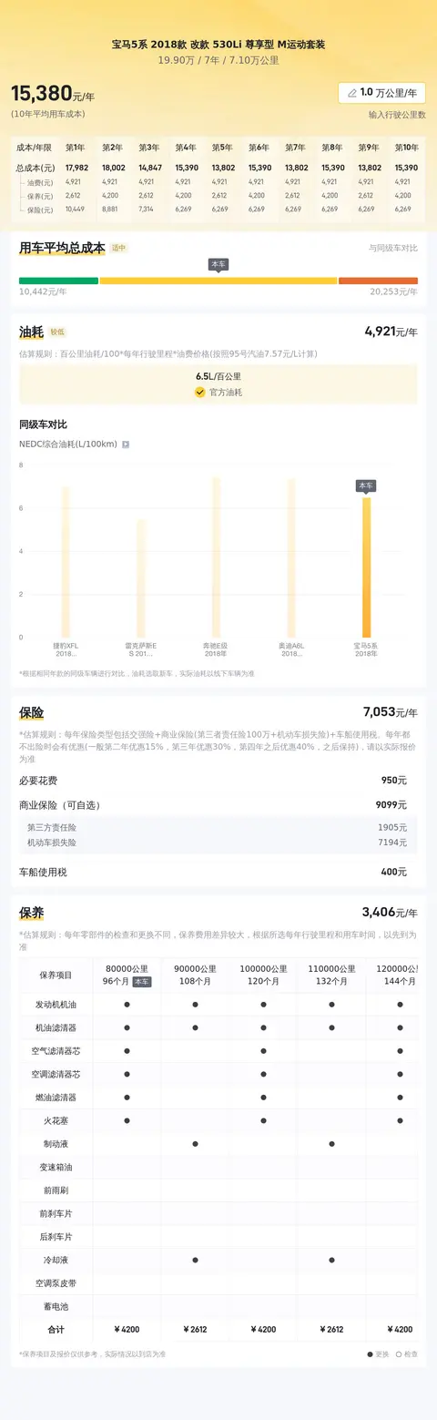 养车成本方面,按一年2万公里计算,该车每年燃油、保险及保养的综合用车成本约每百公里50元,相对合理。