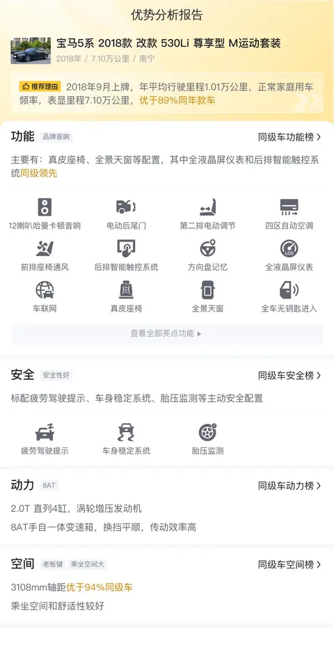 综上所述的新车含税价、用车成本、市场行情、优势分析、同款比价等数据仅供参考。在配置部分,因为二手车非标品,车辆可能会存在配置改装的情况,具体车况信息需要线下结合车辆实际情况进行综合参考。