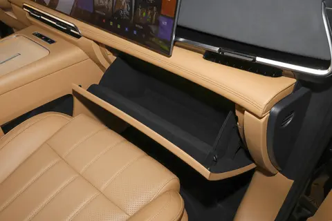 前排座椅新增加了加热、通风、按摩和记忆功能。真正的重头戏在第二排:全新升级的座椅不仅支持加热、通风、按摩,连腿托和扶手也都能加热,并配备了26点按摩系统。这些配置共同构成了所谓的"AI零重力按摩舱",旨在提供头等舱般的舒适体验。第三排座椅也并非摆设,正常身材的成年人中短途乘坐没问题,并且全系标配六座布局,每个座椅均具备电动调节、加热与通风功能。