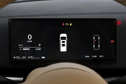 - 设计用料:大面积软质包裹、拉丝木纹装饰、"映山河"透光面板、Zebra wood斑马木纹饰板提升了座舱的豪华氛围;