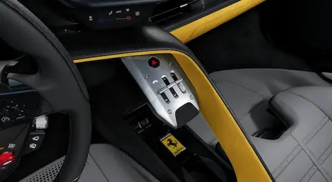内饰方面,法拉利849 Testarossa融合了单座赛车所采用的水平仪表盘和座舱设计。仪表盘上方,铝质边框勾勒出字母C形出风口,营造出悬浮的视觉效果。仪表盘上下部分由一条对比鲜明的水平饰带衔接,该区域整合了主要控制按键与副驾驶显示屏。仪表盘下部两个极具建筑美感的帆形结构元素巧妙整合了一系列控制功能,其中位于方向盘侧的帆形构件采用悬浮式设计,并集成了源自法拉利F80的换挡机构。
