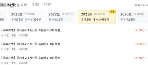 市场行情方面,当前这款坦克300的二手车报价在14.75万至17.65万之间。值得注意的是,市场行情价与最终成交价存在差异,后者还会受到车辆年限、里程以及保养情况等具体状况的影响。就拿今天要介绍的这款车来说,它的行驶里程超过了同年款车型的平均值,同时有过一次过户记录,这也都在一定程度上影响了它的价格。根据懂车帝平台的数据,该车目前在全国范围内有十余辆同款车型在售,这为消费者提供了丰富的对比选择,有助于更准确地把握市场行情。