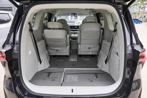 第三排的空间也不错,身高175cm左右的人坐进去,腿部大概能有一拳的距离,头部空间也很充足,短途乘坐完全不会觉得挤。实用的是,三排座椅折叠后能直接下沉到地板,形成一个纯平的储物空间,最大容积能到2792L。要是一家人出去旅行,装下行李箱、婴儿车、露营装备都没问题;要是想在车里休息,把后排座椅放倒,还能变成一张1.8米的大床,出去露营的时候,晚上躺在上面看星星,别提多惬意了。