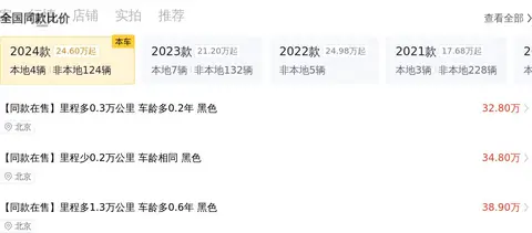 根据当前市场行情,这款车型的二手车价格大约在24.12万至28.55万元之间。具体的价格还要看车辆的实际情况、里程数、车龄以及过户次数等因素而定。这辆车的里程少于均值0.1万公里,车龄少于均值0.3年,过户次数少于均值0.1次,颜色为黑色,这些都使得它的价格相对较高。