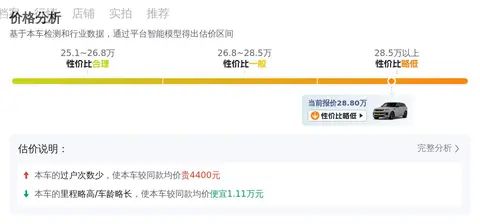 根据懂车帝的数据,这款车的市场行情在24.07万至29.74万之间,而该车的售价为28.8万,处于合理范围内。从保值率来看,该车的保值率为43.92%,而同级车的平均保值率为38.06%,这表明该车的保值率相对较高。在用车成本方面,该车的10年平均用车成本为24680元/年,而同级车的最低10年平均用车成本为19040元/年,最高为31700元/年。相比之下,该车的用车成本适中,适合大多数消费者的预算。