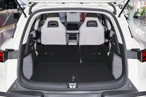 空间层面,悦也Plus主打小车身大空间理念,车内“得房率”达67%,车舱测量空间4.5立方米,乘员舱长2682mm,宽度1343mm,高度1252mm。现场体验以身高181cm用户为例,前排头部空间一拳有余,腿部空间约为915mm,驾驶坐姿较为自如;后排头部空间一拳多,腿部空间870mm,坐垫较厚且平坦,五座布局适合全家出行和朋友聚会。同时,后排支持40:60比例放倒,后备厢基础容量385L(可放下4个20寸中拉杆箱),完全放倒后最大拓展到1715L,适合大件行李或户外露营装备,全车分布28个储物空间,诸如九合一扶手台、副驾储物格等细节,方便乘客放置手机、水杯、文件等物品。
