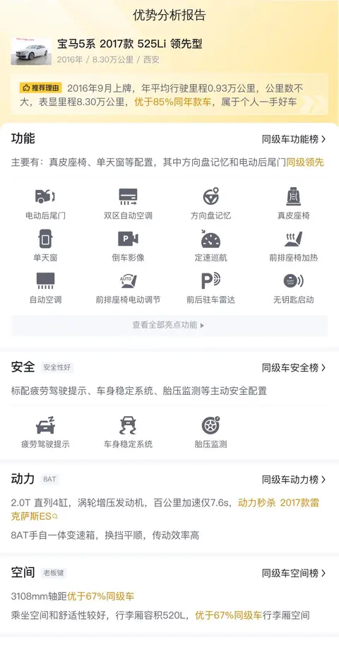 综上所述,我们详细探讨了这辆二手宝马5系 2017款 525Li 领先型的车况、性能配置、市场价值及用车成本。选择这款车型,您可以享受到其良好的动力性能、宽敞舒适的乘坐空间以及较为合理的用车成本。然而,在做出购买决策之前,建议您亲自查看车辆实际情况,确保它能满足您的具体需求与期望。