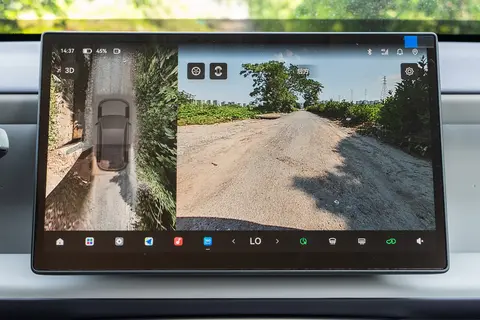 零跑B10的内饰采用了许多胶囊的设计元素,T字型的中控台上没有配备任何实体按键,大部分功能均由两幅式的多功能方向盘、车机屏幕以及语音识别进行操作,提升了一定的科技氛围感,8.8英寸的全液晶仪表盘+14.6英寸的中控屏属于常规的组合方式,配备的是Leapmotor Pilot辅助驾驶操作系统,内置了高通骁龙8155车载智能芯片,支持手机App远程控制、高德地图导航、蓝牙/车载电话、Carlink、HUAWEI HiCar、车联网、OTA升级、语音识别控制系统以及应用商店等功能,智能化表现十分丰富。这台车的换挡形式采用的是电子式怀挡,在驾驶过程中操作会比较便捷,并且在前排中央扶手处配备了手机无线充电功能以及2个最大充电60W的USB/Type-C多媒体接口,能够保障多个电子设备的充电需求。