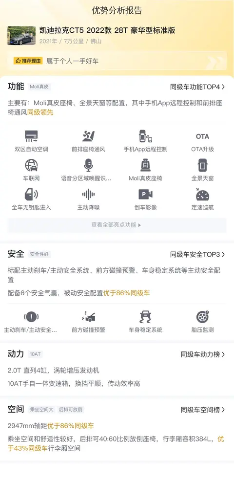 综上所述的新车含税价、用车成本、市场行情、优势分析、同款比价等数据仅供参考。在配置部分,因为二手车非标品,车辆可能会存在配置改装的情况,具体车况信息需要线下结合车辆实际情况进行综合参考。
