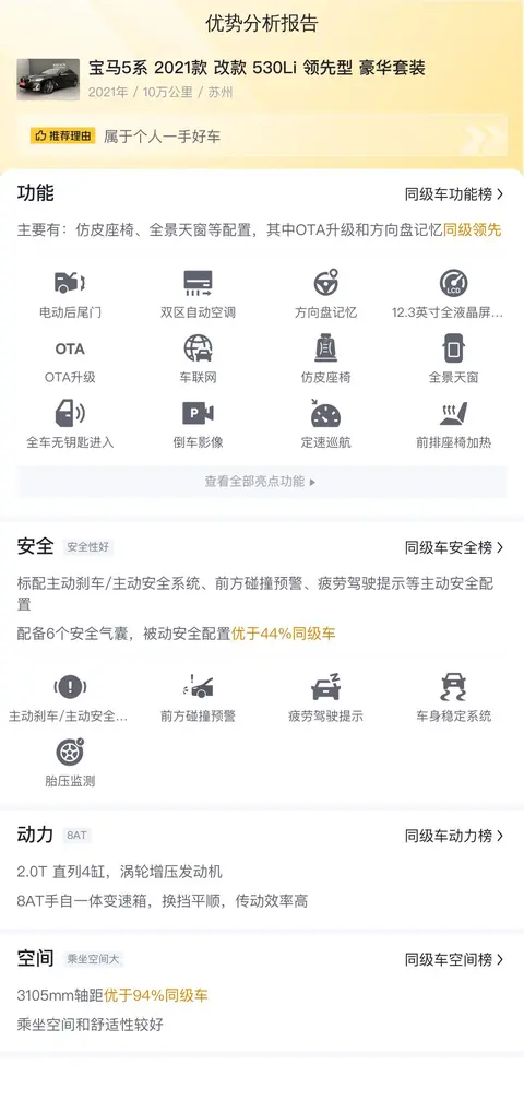 综上所述的新车含税价、用车成本、市场行情、优势分析、同款比价等数据仅供参考。在配置部分,因为二手车非标品,车辆可能会存在配置改装的情况,具体车况信息需要线下结合车辆实际情况进行综合参考。