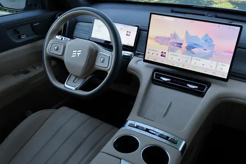 空间方面,有5座和7座可选,2+3+2的座椅布局,二排达到了双1米的乘坐空间,地板纯平,中间乘客不用踮脚;二排座椅支持前后及131°的靠背电动调节,搭配30kg承重小桌板,孩子写作业、老人放茶杯都方便。三排打破“应急”标签,一键电动就能方便进出,靠背也支持电调。车机自带“智能大床模式”,居家大床、旅行小床、小憩模式、驻车沙发4种模式可以一键展开。