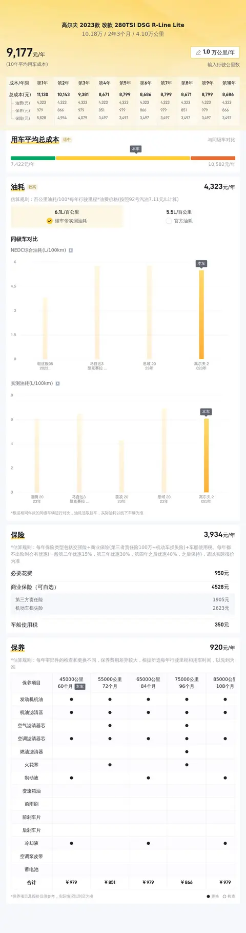 在用车成本方面,根据懂车帝平台的分析,该车型的10年平均用车成本大约在9180元/年,当然具体用车成本还是要根据车辆的实际使用情况而定。