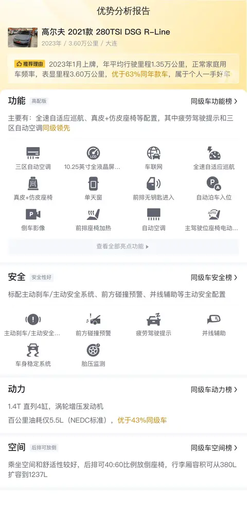 综上所述的新车含税价、用车成本、市场行情、优势分析、同款比价等数据仅供参考。在配置部分,因为二手车非标品,车辆可能会存在配置改装的情况,具体车况信息需要线下结合车辆实际情况进行综合参考。