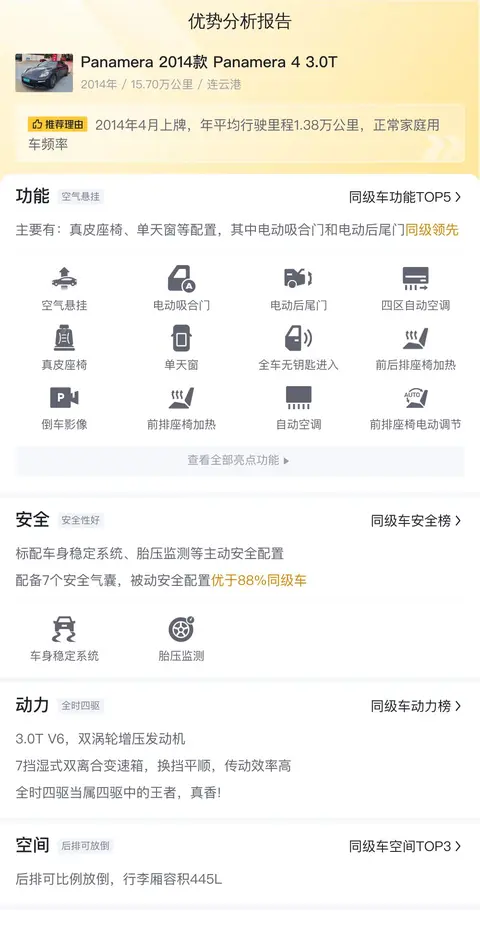 综上所述,这辆二手保时捷Panamera在配置、动力、驾乘舒适度等方面表现出色,具有较高的性价比和市场竞争力。希望喜欢的朋友可以去看看哦!