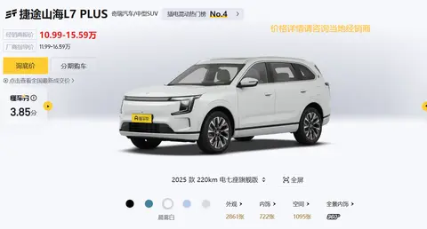 综合来看,捷途山海L7 PLUS不管是空间、配置,还是安全、动力、续航,都很符合家庭露营和自驾游的需求。最关键的是,它的价格很亲民,价格区间在11.99万 - 16.59万(详情请咨询当地经销商)。在同级别车型里,这个价格能买到这么多配置和这么大的空间,性价比真的很高。