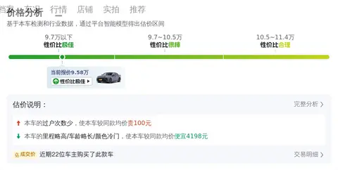 根据懂车帝的大数据分析,目前市场上这款车型的二手车价格区间为9.5万至11.3万元。而该车的报价为9.58万元,处于市场行情的合理范围内,且相较于新车指导价,优惠幅度高达7.1万元。在用车成本方面,这款车的平均每年花费约为6646元,其中包括油费、保养费及保险费等。相较于同级别车型,这款车的使用成本相对合理,是一个经济实惠的选择。