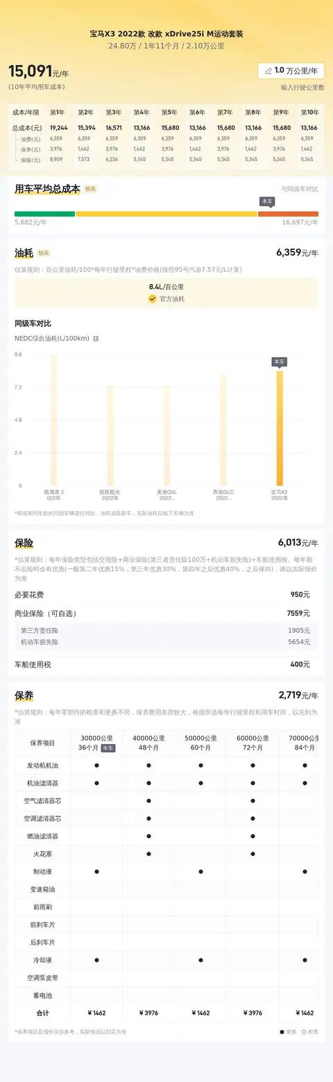 这款车年均综合用车成本约14646元,与同级别车相比处于较高位置。