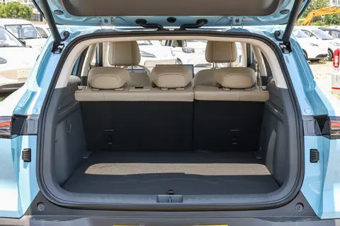 丰田铂智3X并没有配电动尾门。有当然是好,即使没有,我觉得影响也不大。有液压杆,开门也不费力。这个尾箱容量为427L。和宝骏云海EV的尾箱相比,容量少了超过20%。目测放3个登机箱是没有问题的。对于三,四口人的年轻小家庭,这个尾箱还是够用的。这款车的后排座椅支持放倒,灵活性没有问题。但是内部空间并不够规整,他的轮胎入侵比较明显。尾门的开口挺大的,但是地台稍微有点高。对比较重的行李不够友好。这也稍微有点减分。