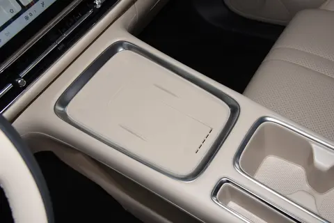 前排有 50W 无线充电板,手机放上去就能充,不用插数据线;全系还标配 6 个扬声器,听新闻、放音乐音质清晰,比很多 4 个扬声器的车效果好,堵车时听歌能舒缓心情。