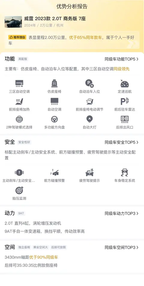 综上所述的新车含税价、用车成本、市场行情、优势分析、同款比价等数据仅供参考。在配置部分,因为二手车非标品,车辆可能会存在配置改装的情况,具体车况信息需要线下结合车辆实际情况进行综合参考。