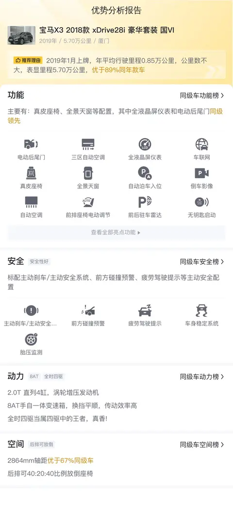 综上所述的新车含税价、用车成本、市场行情、优势分析、同款比价等数据仅供参考。在配置部分,因为二手车非标品,车辆可能会存在配置改装的情况,具体车况信息需要线下结合车辆实际情况进行综合参考。
