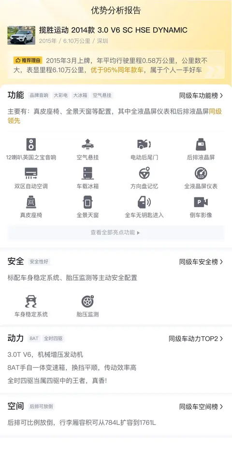 综上所述的新车含税价、用车成本、市场行情、优势分析、同款比价等数据仅供参考。在配置部分,因为二手车非标品,车辆可能会存在配置改装的情况,具体车况信息需要线下结合车辆实际情况进行综合参考。
