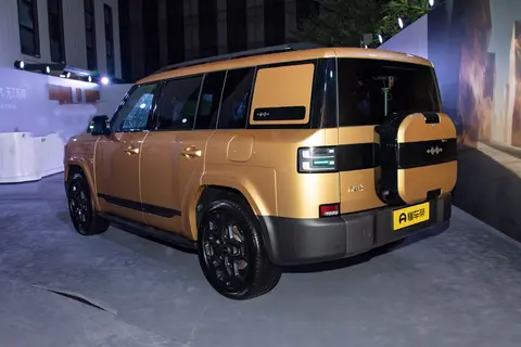 方程豹钛7采用承载式车身结构,外观具有硬派SUV常见的“方盒子”风格,匹配无漆材质的前/后保险杠和侧裙等车身细节。此外,该车尾门提供外挂式“小书包”设计,不过其并非备胎,而是小型外挂式储物箱,内部带有置物网。