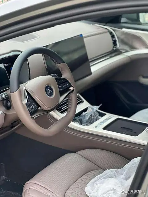 在内饰方面,我们可以看到新车的细节进行了一些调整,新车继续采用两幅式的方向盘,中间采用悬浮式的大屏,新车的中控台上采用的是全新的磨砂材质的面板,这样看起来更温馨一些。它的前侧的中央通道的位置也采用了全新的布局方式,有一个很大的无线充电区域,前侧是隐藏式的水杯架。新款汉DM增加了冰箱,并且采用的是怀挡设计,更容易操作。在动力方面,新车可能继续搭载1.5T的涡轮增压发动机和电机的组合,作为参考,现款发动机最大输出115千瓦,峰值扭矩为225牛·米;它采用的是200kW的前电机,此外新车的续航有望提升。