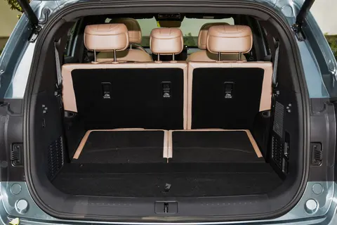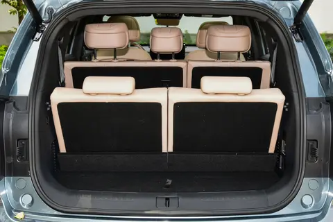 它有五座和七座两种选择,要是平时人少,选五座的,后备箱空间特别大,有732升,还不算74升的下沉空间,平时买个菜、拉点行李,都不在话下。要是把后排座椅放倒,后备箱空间能达到1708升,我上次帮朋友拉了一个小衣柜,轻松就装下了。