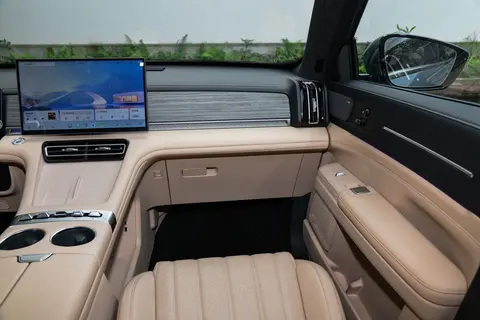 它全车七座都能电动调节,不管是调前后,还是调靠背角度,按个按钮就行,不用费劲去掰。第二排的座椅还能调131度,想坐直点看风景,或者想半躺着休息,都能找到合适的角度。第三排也特别方便,想进去的时候,按个按钮,第二排座椅就会自动挪开,不用费劲去拉,老人小孩都能轻松上下车。