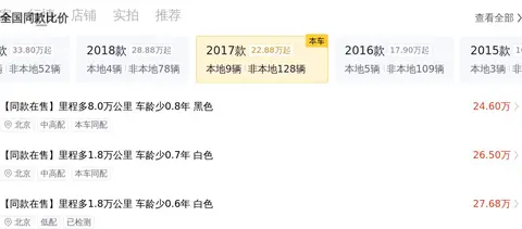 在全国范围内,有多家车源在售,我们选了一些车源,可以给您提供一个综合的市场行情参考。