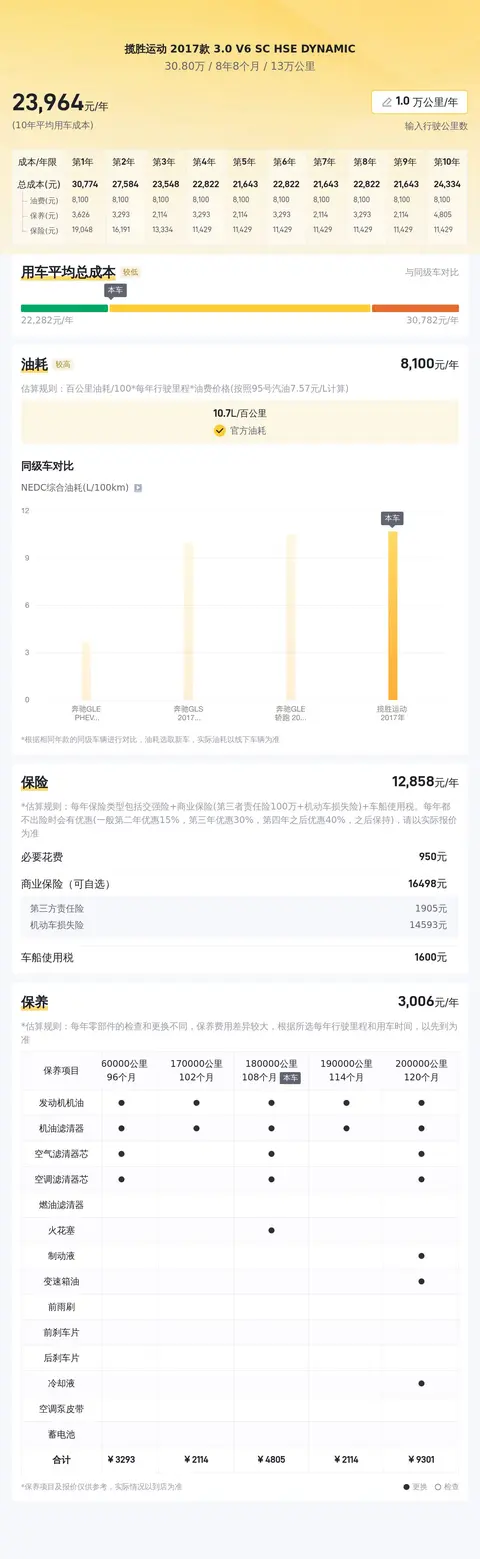 根据懂车帝的大数据分析,这辆车的10年平均用车成本约为23673元/年,具体用车成本金额根据用车强度及保养情况而有所不同。