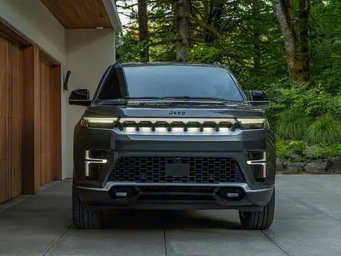 外观采用新家族设计,标志性七孔格栅首次融入LED光源,搭配贯穿式灯带,引擎盖标识从“Wagoneer”换为“Jeep”,全车取消镀铬装饰以彰显可持续理念。侧面延续硬朗轮廓,提供18-22英寸轮圈,车尾新增贯穿式尾灯并同步更新品牌标识。