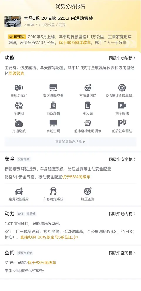 综上所述的新车含税价、用车成本、市场行情、优势分析、同款比价等数据仅供参考。在配置部分,因为二手车非标品,车辆可能会存在配置改装的情况,具体车况信息需要线下结合车辆实际情况进行综合参考。