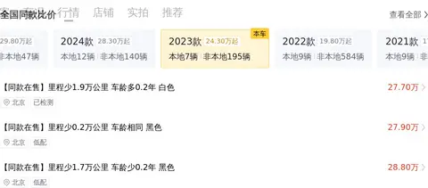 该车是2023年5月上牌的,车源地和车牌地都在乌鲁木齐,车身颜色为黑色,至今行驶了6万公里,过户0次。新车含税价为57.01万,而现在的二手车报价是29.48万,相差27.53万。