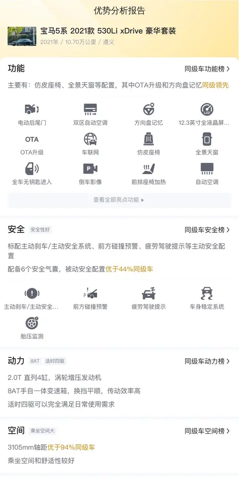 综上所述的新车含税价、用车成本、市场行情、优势分析、同款比价等数据仅供参考。在配置部分,因为二手车非标品,车辆可能会存在配置改装的情况,具体车况信息需要线下结合车辆实际情况进行综合参考。
