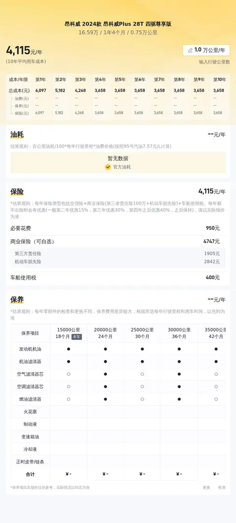 根据懂车帝平台的大数据分析,昂科威 2024款 昂科威Plus 28T 四驱尊享版的当前售价为16.59万元,在市场行情中具有较高的性价比。从用车成本来看,这款车的平均使用成本约为11606元/年,相较于同级别车型,这一成本处于合理范围内。从功能配置来看,昂科威 2024款 昂科威Plus 28T 四驱尊享版在动力、安全、舒适性以及智能互联等方面均表现出色,为驾驶者和乘客提供了优质的驾乘体验。综合考虑,昂科威 2024款 昂科威Plus 28T 四驱尊享版是一款集豪华与实用于一体的中型SUV,适合追求高品质生活的消费者选择。