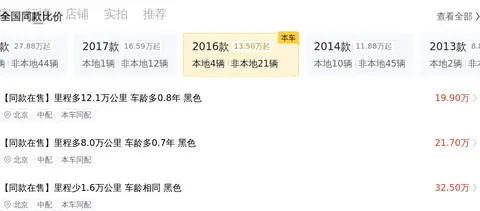 里程:车辆行驶里程为7.5万公里,低于同类车型的平均里程11万公里。