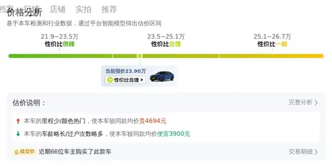 综上所述,影响车辆价格的核心因素有三个,即车龄、里程和过户次数。具体到这篇文章里的这辆车,这三个因素的状况分别是:车龄,少于均值0.8万公里,+3200元,车龄,多于均值0.2年,-1800元,过户次数,多于均值0.5次,-2100元,颜色,白色,+1494元。基于此,结合这辆车的车况以及市场行情,我们分析得到这辆车目前23.9万的售价合理。