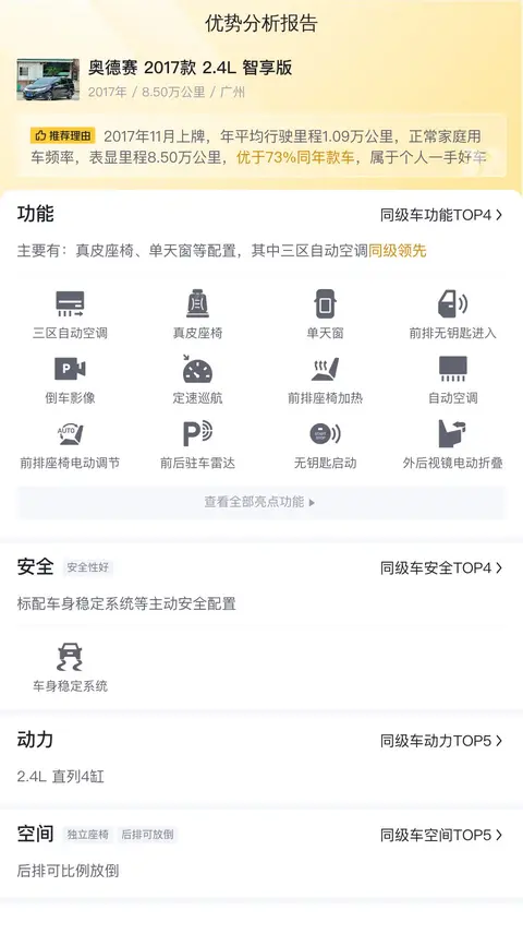 综上所述的新车含税价、用车成本、市场行情、优势分析、同款比价等数据仅供参考。在配置部分,因为二手车非标品,车辆可能会存在配置改装的情况,具体车况信息需要线下结合车辆实际情况进行综合参考。