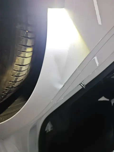 在外观检测部分,经过对汽车主要覆盖件检测,有1项问题需注意,具体是剐蹭:右后翼子板。