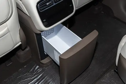 除了丰富的储物空间,腾势N8L的后备箱和智能冷暖三开冰箱更是家庭出行的“刚需配置”。常规状态下的后备箱容积已经相当可观,放下一家六口的日常行李完全没问题;如果需要装载露营装备、婴儿车等大件物品,放倒第三排座椅后,后备箱容积可扩展至1077L,再加上51L的下沉式储物空间,即便是折叠自行车、帐篷、烧烤架等 bulky 的物品也能轻松容纳。而智能冷暖三开冰箱的设计更是深得人心,它支持制冷和制热两种模式,制冷可低至5℃,制热可达55℃,无论是夏天出行时想要喝到冰镇饮料,还是冬天需要给孩子的奶瓶保温,都能轻松实现。冰箱的三开设计也很实用,前排驾驶员和后排乘客都能方便地取用物品,长途旅行中,孩子们随时能喝到温度适宜的饮品,家人们也能分享新鲜水果,这样的细节配置让每一次出行都更显惬意。