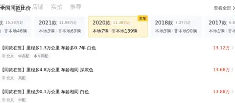 与同款比价,得出这款车在二手市场上的价格并不占优势,但它的行驶里程较少,且未经过过户。