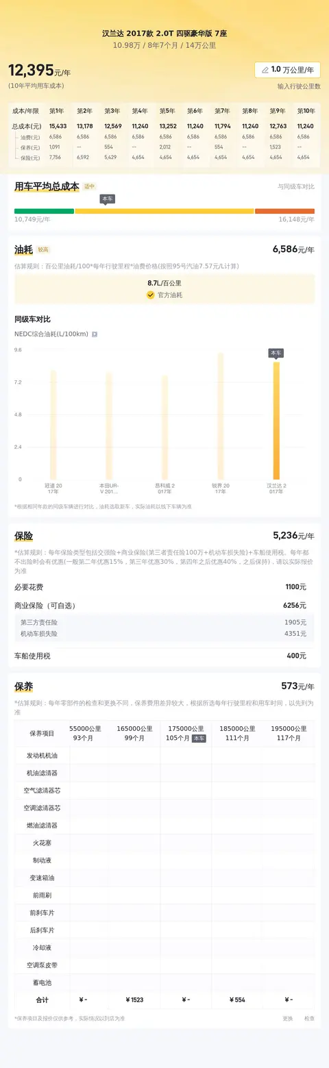 综上所述的新车含税价、用车成本、市场行情、优势分析、同款比价等数据仅供参考。在配置部分,因为二手车非标品,车辆可能会存在配置改装的情况,具体车况信息需要线下结合车辆实际情况进行综合参考。